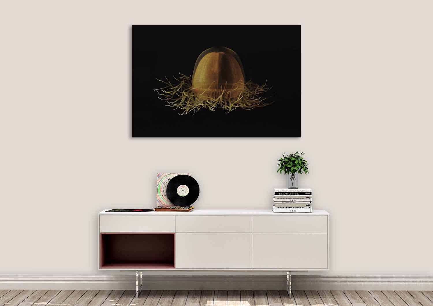 Das metallische Finish verstärkt Farbkontraste und verleiht einen subtilen metallischen Glanz, wodurch jedes Gemälde einen markanten und luxuriösen Charakter erhält.