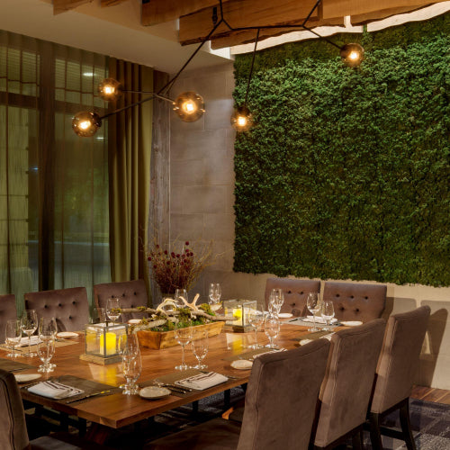 Moswanden brengen de natuur in elke ruimte. Van kantoor tot aan het restaurant. wat zorgt voor een rustgevend en verfrissend gevoel. Ze inspireren, verbeteren de sfeer en akoestiek, en creëren een natuurlijke uitstraling die welzijn en creativiteit bevordert. Bovendien zijn ze duurzaam en onderhoudsvrij.