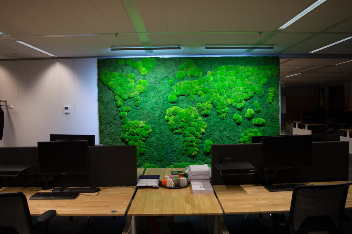 Een moswand is volledig aan te passen aan jouw wensen en specifieke ruimte. Of je nu kiest voor een strak ontwerp, een speels patroon of een logo van mos, wij maken het op maat.