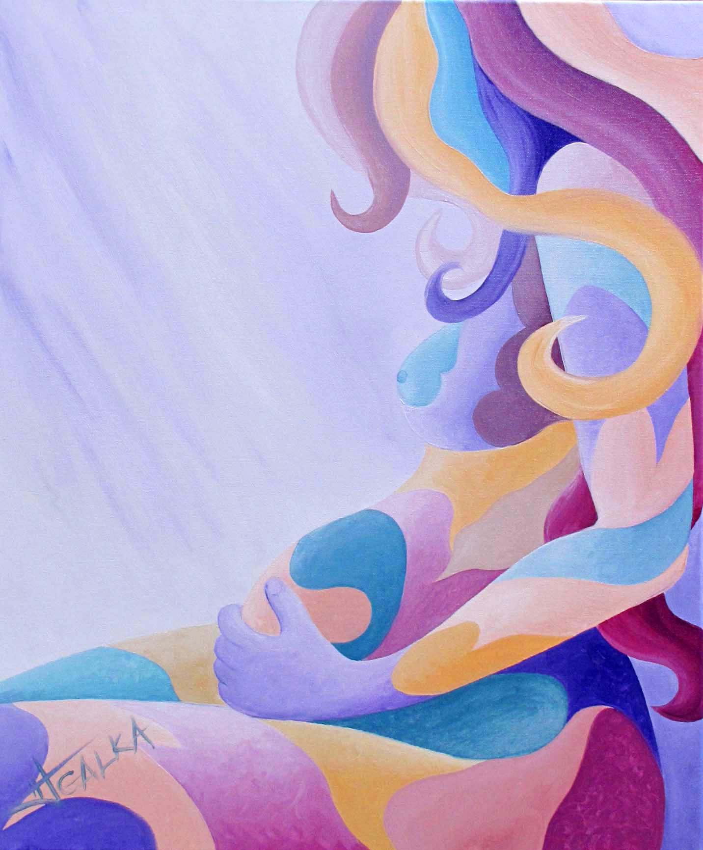 Dit schilderij van de Franse kunstenares Galka ademt warmte, liefde en harmonie.