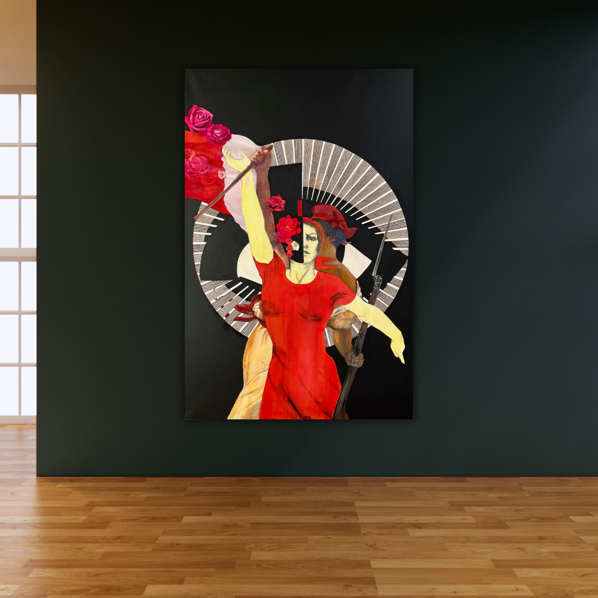 In ‘Women Against Fascism’ echoot Marianne Nina Vatolina’s heldin van het volk. De driekleur is teruggebracht tot rood en roze.