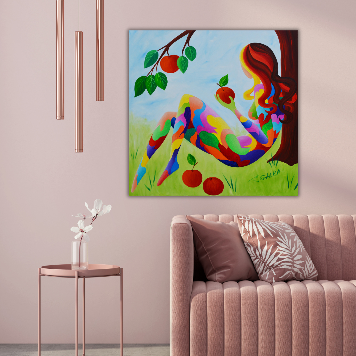 "A croquer" van de Zuid-Franse artiest Galka is een origineel kunstwerk dat een sensuele, kleurrijke vrouw in de natuur afbeeldt. Met een unieke combinatie van levendige kleuren en verfijnde vormen straalt het schilderij elegantie en charme uit. Dit exclusieve werk wordt geleverd met een echtheidscertificaat.